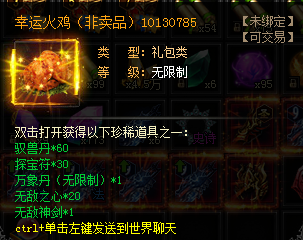 备注:以上两档奖励为限时线下奖励,活动期间三天内,可与日常线下道具同步生效;不可重叠领取,例如充值1000元,则只能选择幸运火鸡礼盒*1或者日常线下中1000档道具其中之一;月末线下活动结束后,以上两种道具失效,不做赠送,机会难得!